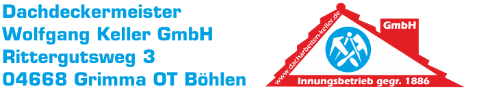 ServiceWir sind für Sie da. Mit unserem 24h-Notdienst und dem Dach-Check! BeratungWir beraten Sie zu Ihrem neuen Dach, Carport oder den weiteren Dienstleistungen unseres Leistungsspektrums. LeistungsspektrumWir decken nicht nur Dächer! UnternehmenDachdecker Keller - Dächer für Generationen Kontakt Dachdeckermeister Wolfgang Keller GmbH Rittergutsweg 304668 Grimma OT Böhlen Tel: 03 43 86 / 4 13 42Fax: 03 43 86 / 4 49 00Mobil: 0173 / 941 400 6Mail: info@dacharbeiten-keller.de Kontaktformular Name E-Mail-Adresse Nachricht Senden